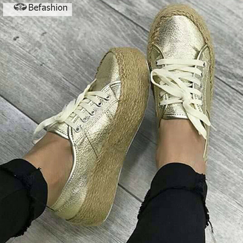 Bf Women Platform Sneakers Canvas Lace Up High Wedges Casual